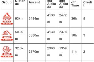 ◈ 赛事规格:本次赛事将申请为国际越野跑协会(ITRA)和环勃朗峰超级越野跑(UTMB)认证积分赛