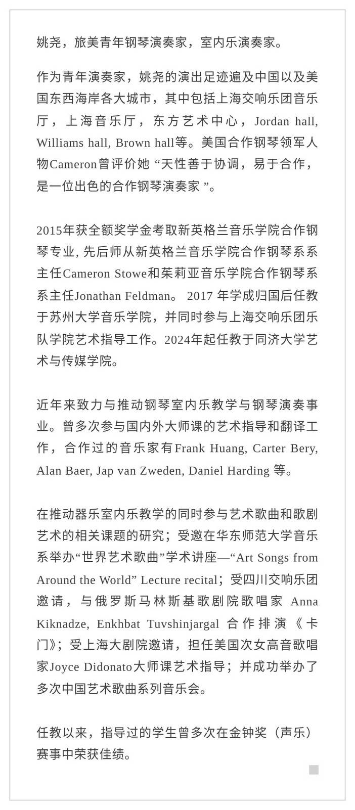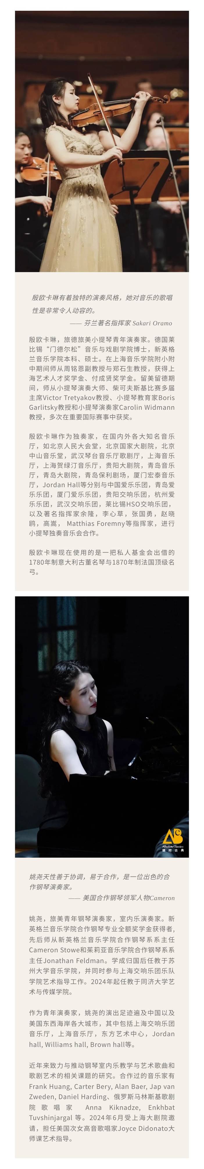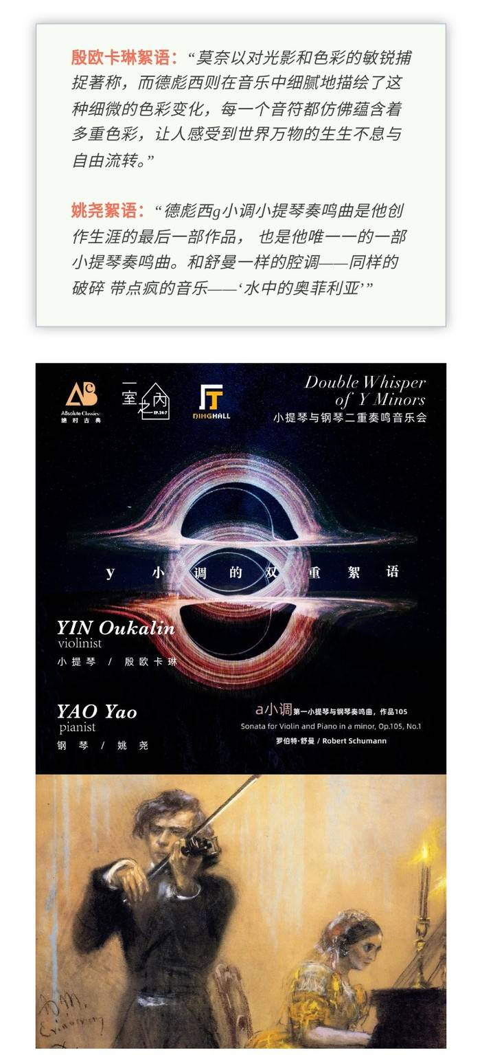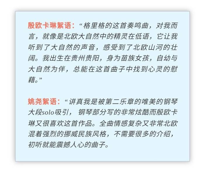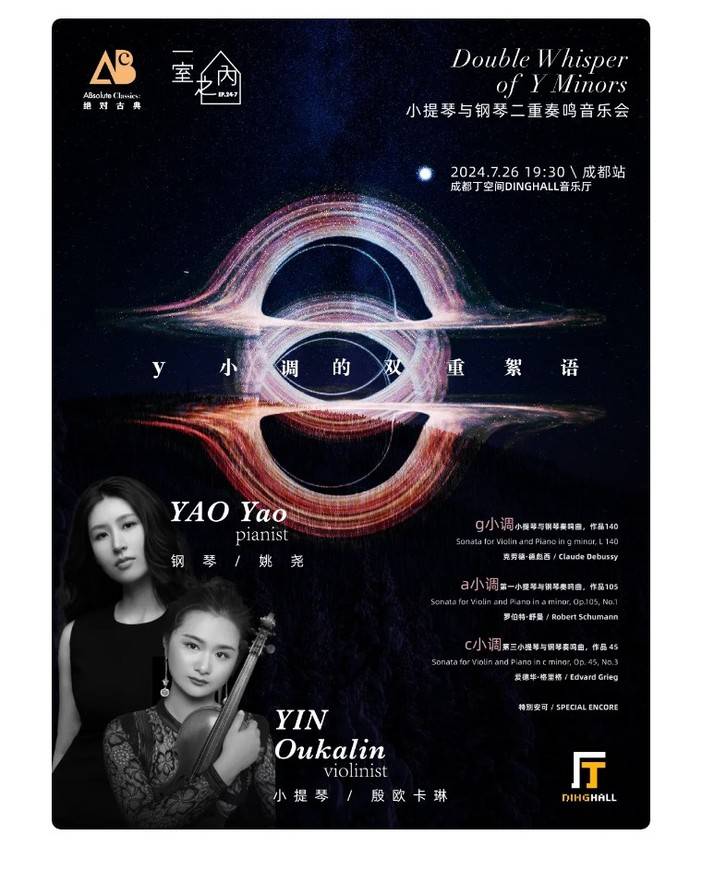 期待7月26日,与我们共同聆听,姚尧和殷欧卡琳不仅将展现正统古典主义语境下“二重奏鸣曲”的文化多元性,更会阐释出新一代女性视角下的音乐情感与力量!