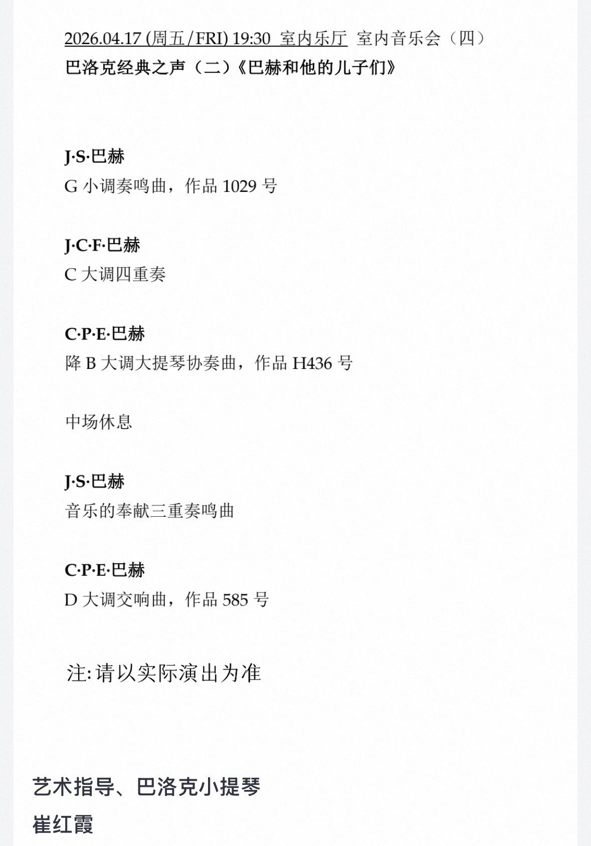 26/4.17绝对古典团票|室内音乐会「巴赫和他的儿子们」 [复制链接]