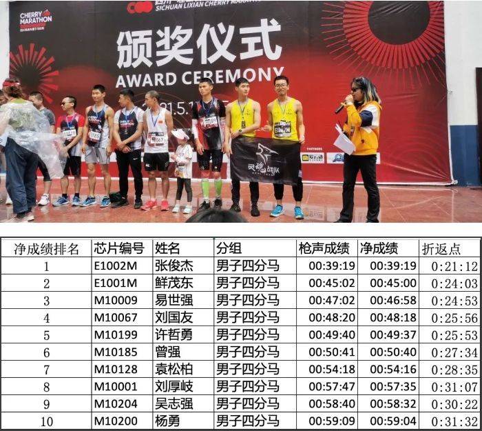 四分马男子前十成绩公示